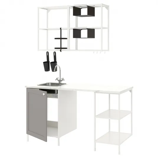 IKEA ENHET Bucatarie, alb/gri cadru, 163x63.5x222 cm