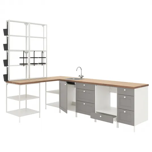 IKEA ENHET Bucatarie colt, alb/gri cadru