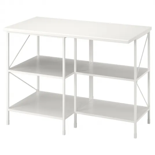 - Spatiu amplu de depozitare: Insula de bucatarie ENHET are mai multe rafturi, sertare si compartimente, oferind spatiu amplu de depozitare pentru toate lucrurile esentiale din bucatarie.