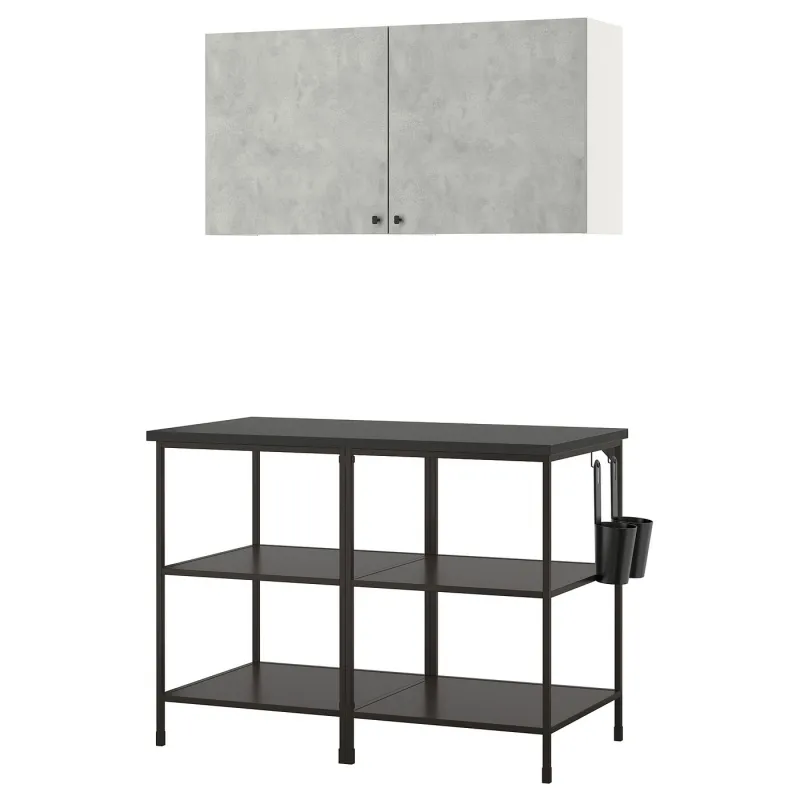 IKEA ENHET Ansamblu depozitare, antracit/aspect beton, 123x63.5x207 cm