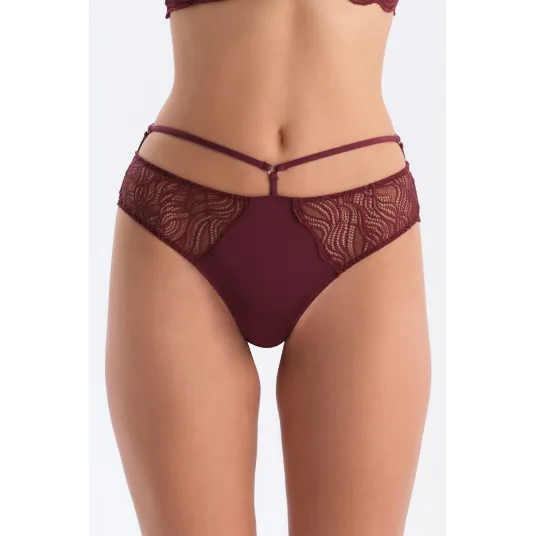 EROS, Chiloti de dantela cu bretele decorative, Visiniu, M
