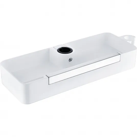 Etajera Aquasanit CONCEPT, pentru seturi de dus si coloane de dus, montare pe bara de dus, include stergator pentru cabina de dus si suport pentru para de dus,ABS alb, pentru bare de dus cu diametrul o22-24-25 mm