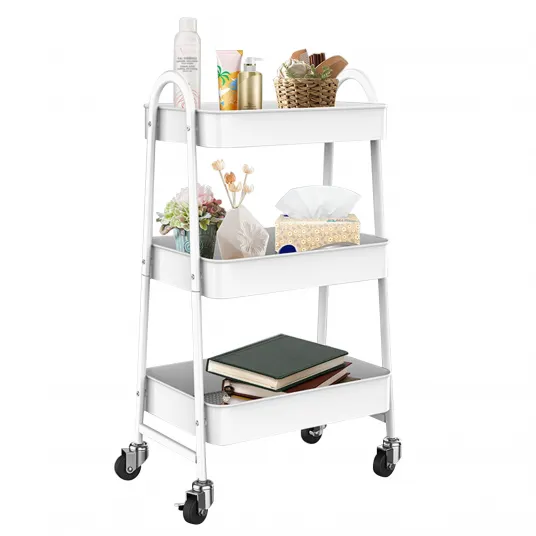 Etajera cu 3 cosuri, Wacorresi, Metal, Roti pivotante, Bucatarie, Baie, Loft, 30x46x77cm, Alb