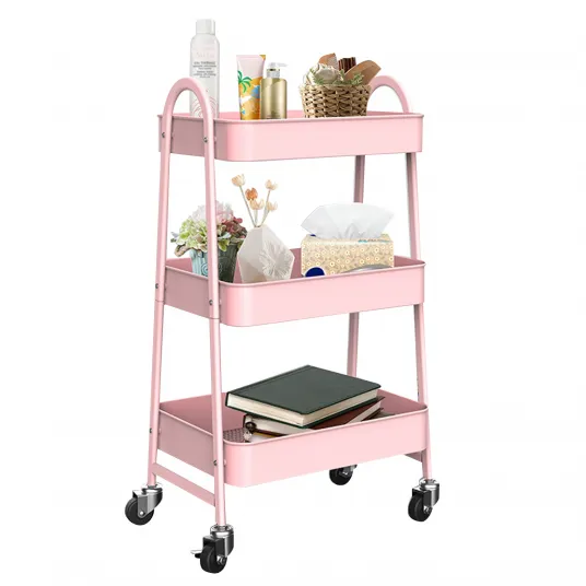 Etajera cu 3 cosuri, Wacorresi, Metal, Roti pivotante, Bucatarie, Baie, Loft, 30x46x77cm, ROZ