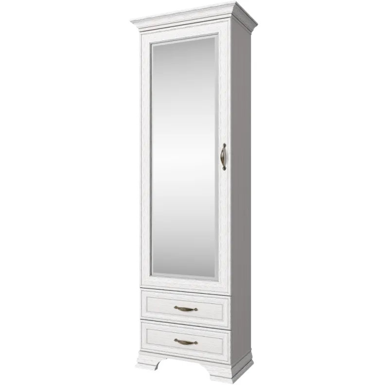 Material: HDF laminat muchii ABS sticla Varianta de culoare: woodline crem Dimensiuni (LxAxI): 69x39,6x212,1 cm Grosimea materialului modulului: 1,6 cm Grosimea materialului placii superioare: 2,2 cm Cadre patinate Cu doua sertare Inaltimea sertarului: 19,1 cm Cu usa Cu oglinda pe usa Cu rafturi Cu manere Cu spatiu de depozitare Cu picioare Inaltimea picioarelor: 8 cm Realizata la comanda Timpul de livrare este de 3-5 saptamani Livrata dezasamblata
