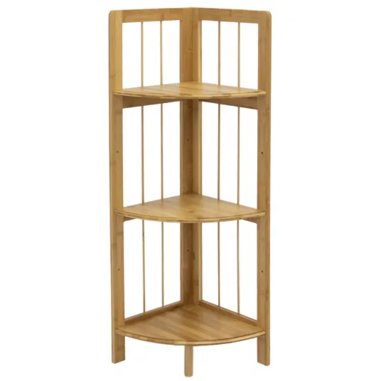 Etajera de colt Kring Provence, 3 rafturi, bambus, 30x30x98 cm, culoare lemn natur