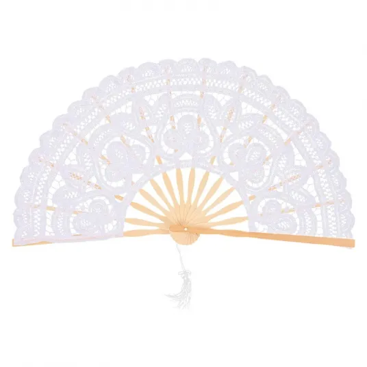 Evantai dantele, NUODWELL, Lungime inchisa 27 cm, deschidere 54 cm, Designul pliabil, Greutate redusa, Usor de transportat, Reutilizabile, Pentru decoratiuni interioare, nunti si concerte, Bumbac/Bambus, Alb