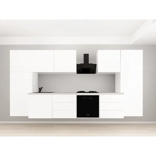 Lungimea totala a bucatariei Evora 8 este de 3.60 metri, aceasta dimensionare asigurand o integrare armonioasa si eficienta in orice spatiu dedicat, fie ca este vorba de o bucatarie spatioasa sau una mai compacta.