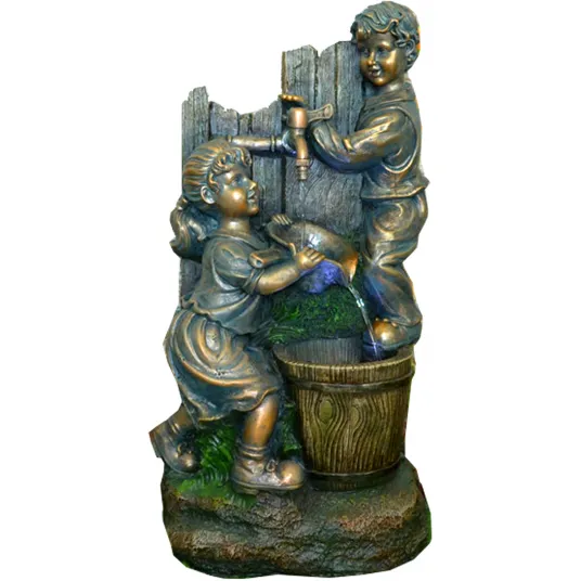 Fantana are un design unic, cu o silueta asemanatoare unui copil care sta langa o gura de apa. Luminile LED sporesc frumusetea fantanii, creand o afisare vizuala fascinanta in timpul zilei si al noptii. Stralucirea fina a luminilor adauga o ambianta senina gradinii tale, facand-o un loc perfect pentru a te relaxa dupa o zi lunga.