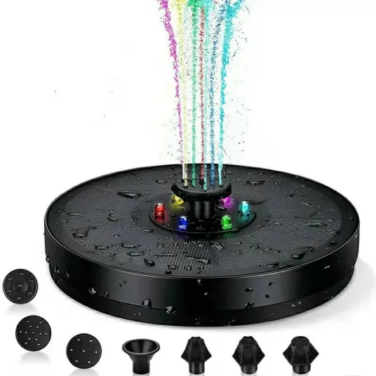 Fantana solara pentru gradina 7 in 1 RorAem, Plutitoare pe Apa cu IIluminare LED Multicolor, tip fantana arteziana 7 moduri de stropire, Diametru 6.7 inch, pentru gradina, iaz, piscina, cascada, Negru