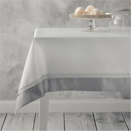 Fata de masa Khol - un must-have pentru orice sarbatoare. Fie ca este o mica intalnire cu cei dragi sau o cina mare somptuoasa - fata de masa Khol trebuie sa fie acolo. Combinatia de alb si argintiu va aduce o nota de eleganta interiorului tau. Unicitatea fiecarei ocazii va fi subliniata prin decoratiuni reprezentative sub forma de elemente care imit stralucitori si seamana cu florile minuscule. Fata de masa Khol va crea un decor atemporal pentru masa dumneavoastra - in fiecare zi si de sarbatori.Descriere