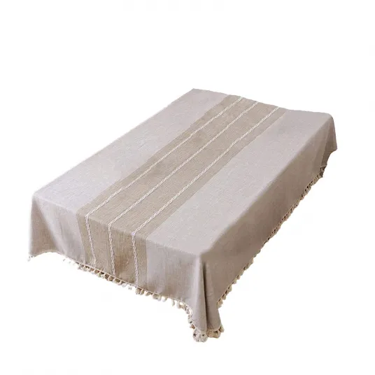 Fata de masa, Zggzerg, Impermabil anti-creseala si colorfast, Bumbac 100%, Design de margine cu ciucure, Ideal pentru mese de bucatarie, petreceri si decoratiuni interioare, 140x180 cm, Bej