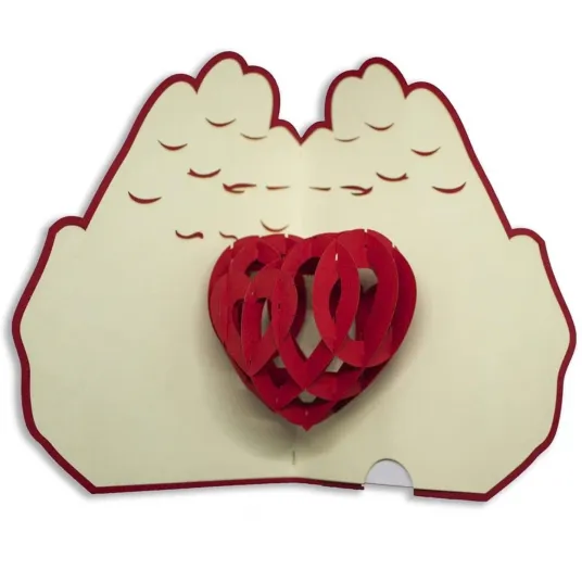 Felicitare 3D stil Origami, Fabricat manual, Model inima, Crem/Rosu