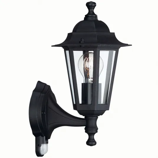 Felinar iluminat exterior Philips Peking, cu senzor de miscare, E27, IP44, 37x17.5x22 cm, Aluminiu/Sticla, Negru