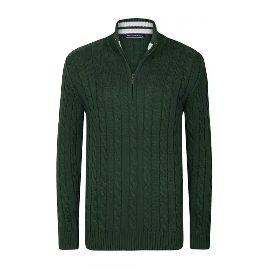 Felix Hardy, Pulover cu model torsade si fenta cu fermoar, Verde inchis, M