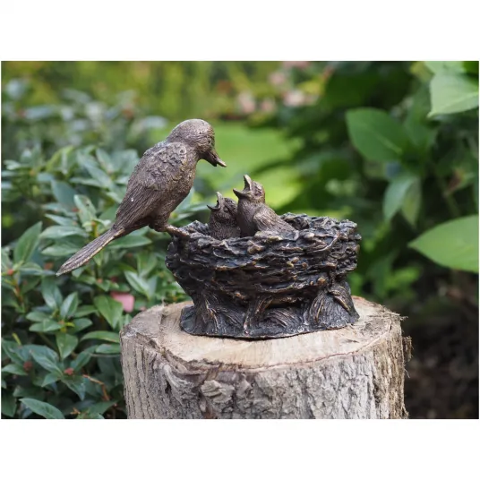 Figurina pentru exterior pasare cu pui in cuib Joyard, bronz, 20x9x14cm