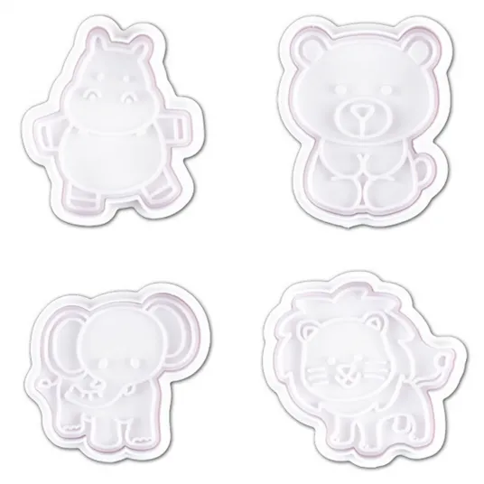 Forma de copt biscuiti, Hggzeg, 4 bucati, Hipopotam, urs, elefant, leu, Rezistent la caldura, Usor de curatat, Netoxic si inodor, Reutilizabile, Pentru paine, dulciuri si alte produse de patiserie, Silicon, Alb