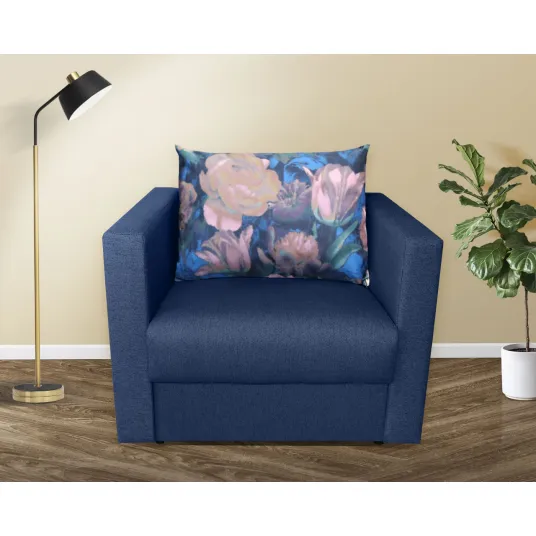 Fotoliul Croma are saltea cu plasa de arcuri (tip Relaxa) si burete de densitate mare pentru o rezistenta sporita in timp. Atat fotoliul cat si perna sunt tapitate cu stofa.