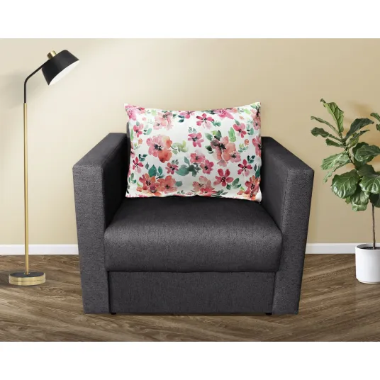 Fotoliul Croma are saltea cu plasa de arcuri (tip Relaxa) si burete de densitate mare pentru o rezistenta sporita in timp. Atat fotoliul cat si perna sunt tapitate cu stofa.