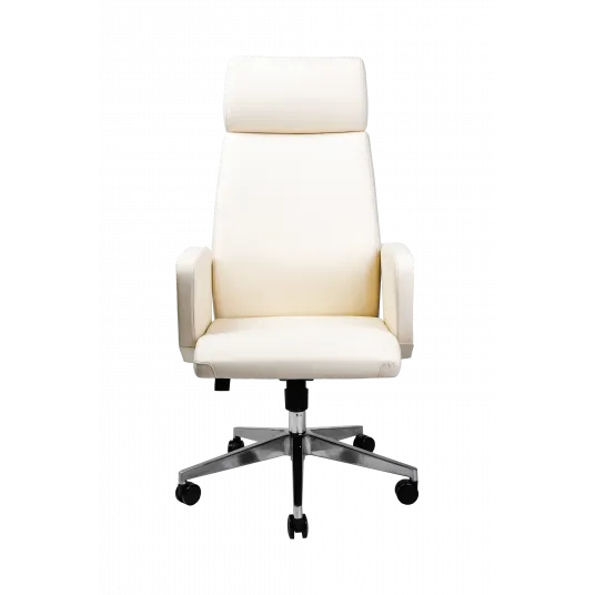 Fotoliu de birou, rotativ, sezut din piele artificiala, spatar din piele artificiala, tetiera fixa, cotiere fixe, roti din nailon, bej