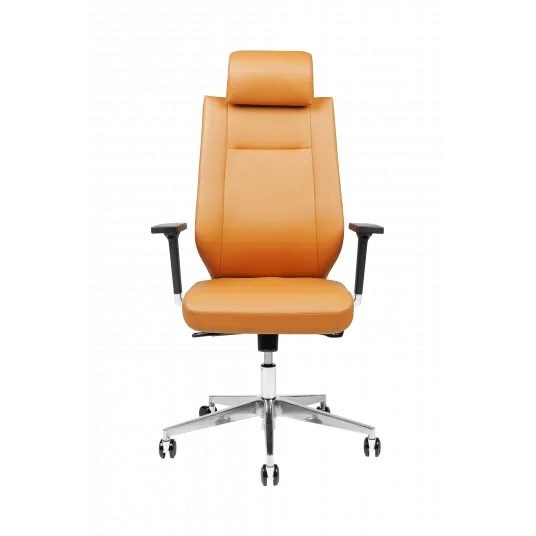 Fotoliu de birou, rotativ, sezut din piele artificiala, spatar din piele artificiala, tetiera fixa, cotiere reglabile 3D, roti din poliuretan, oranj