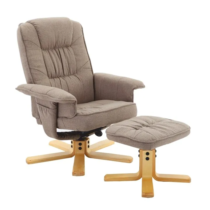 Fotoliu de lux , taburet inclus , relaxant , stofa maro-gri , reglabil, suport pentru picioare