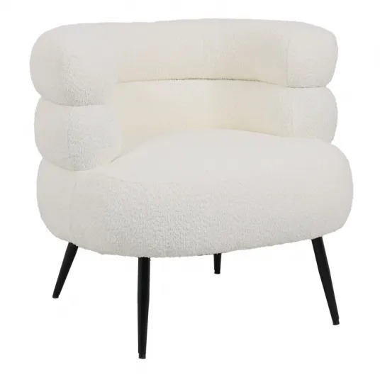 Forma sa rotunjita si confortabila creeaza un efect vizual impresionant, in timp ce picioarele din metal negru adauga un aer de lux si durabilitate. Culoarea alba se potriveste perfect in orice decor modern, fiind usor de integrat in diverse stiluri de interior.