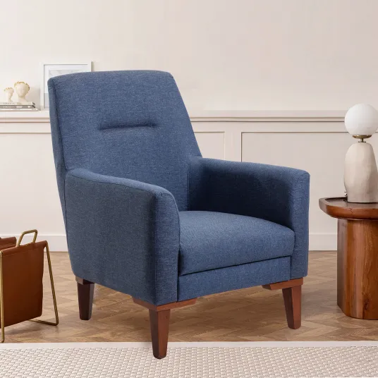 Cu o culoare solida intr-o nuanta captivanta de albastru inchis, scaunul nostru cu aripi adauga o nota de rafinament oricarei incaperi. Designul sau elegant si modern se imbina fara efort cu diverse stiluri de interior, inclusiv cu teme inedite, hoteliere, rustice si scandinave.