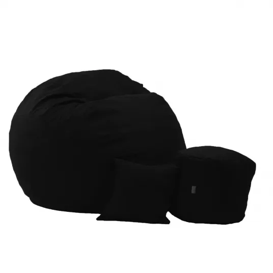 Fotoliu Pufrelax King Size + Otoman + Perna decorativa - Eerie Black (Gama Premium) umplut cu fulgi de burete memory mix