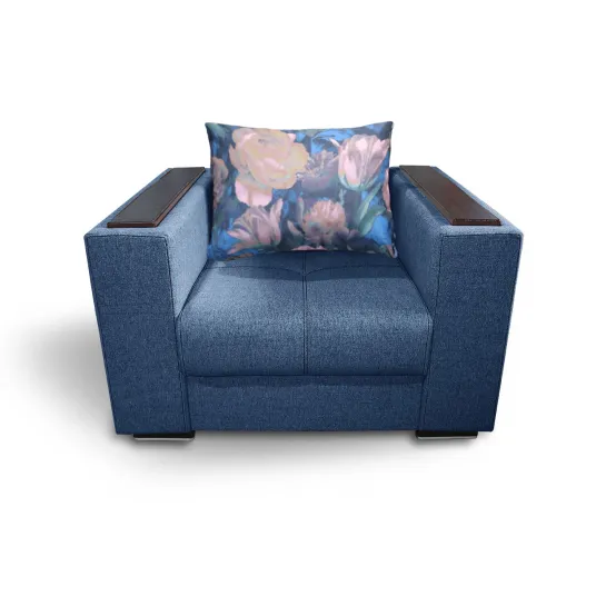 Fotoliul Solis are saltea cu plasa de arcuri (tip Relaxa) si burete de densitate mare pentru o rezistenta sporita in timp. Atat fotoliul cat si perna sunt tapitate cu stofa.