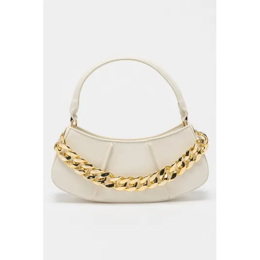 Francesca Rossi, Geanta crossbody din piele ecologica cu maner din lant, Crem