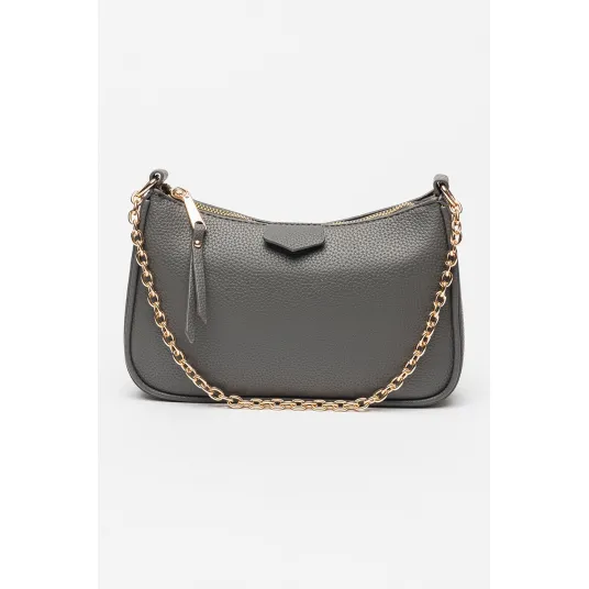 Francesca Rossi, Geanta de piele ecologica cu bareta din lant pentru umar, Gri antracit