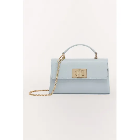 Furla, Geanta crossbody mica din piele 1927, Albastru glaciar