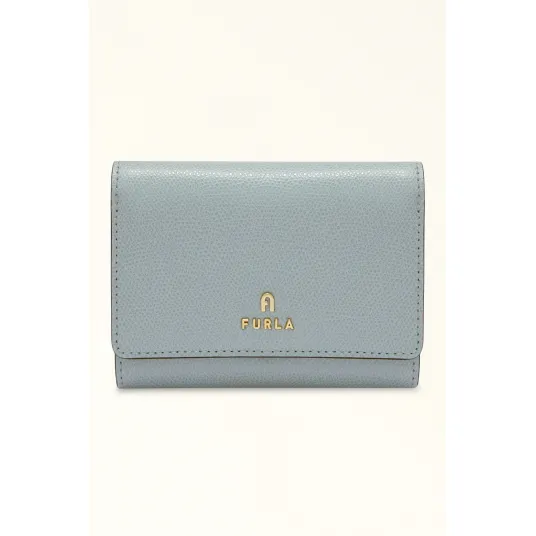 Furla, Portofel din piele cu logo metalic Camelia, Albastru deschisFurla, Portofel din piele cu logo metalic Camelia, Albastru deschis223659685223659685