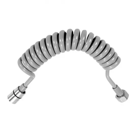 Furtun dus silicon, spiralat gri, lungime totala 2m, retractabil, Pentru pistoale de pulverizare, de tip linie telefonica, extinse, cu arc