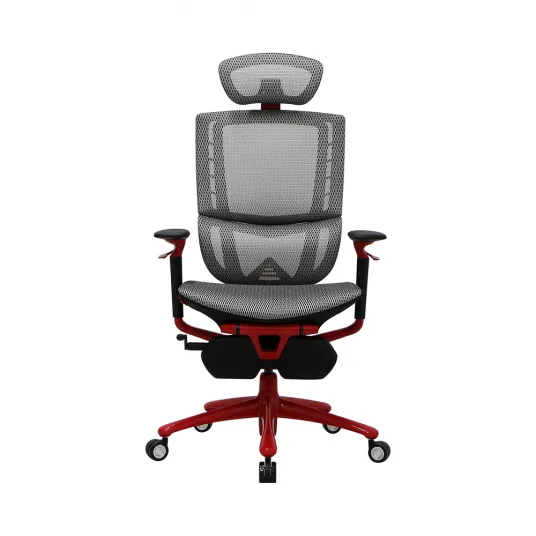 Gaming Chair 1STPLAYER ERGO PLAY White&Red, High tech reinforced polyester material mesh, Reinforced steel frame, 3D armrest, soft PU-cushioned footrest, aluminum outer frame, 4 class Gaslift, 60mm noiseless PU caster, Tilt Angle Adjuster:95°-120°,160KG