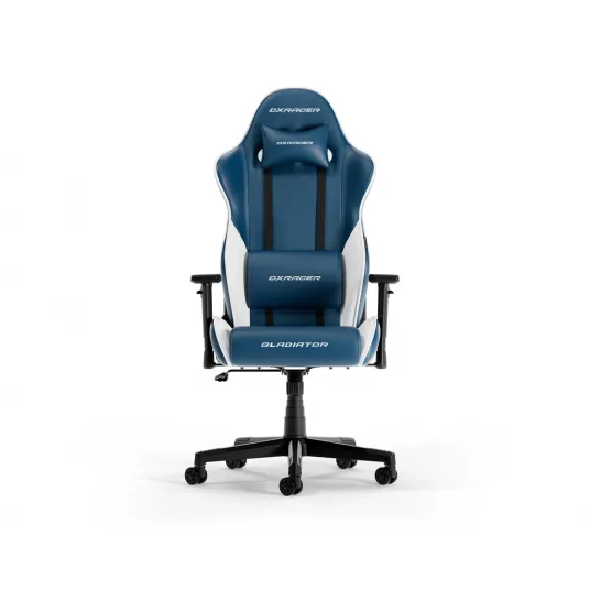 Gaming/Office Chair DXRacer GLADIATOR-L-N23-LTC-BW-X1, Blue/White, Gaslift class 4, Premium PVC leather, max weight up to 150kg / height 180-200cm, Full tilt, Recline 90°-135°, 3D Armrests, Headrest and lumbar cushions, 6 cm PU Caster, W-22,15 kg