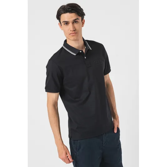 Gant, Tricou polo de bumbac cu logo brodat, Negru, 3XL