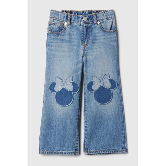 GAP, Blugi cu croiala ampla si detalii cu Minnie Mouse, Albastru pastel, 90 CM