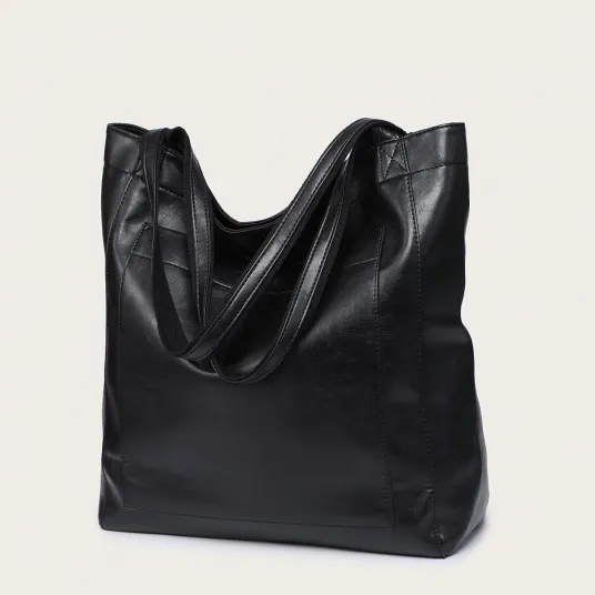 Geanta de dama, piele moale cerata cu ulei, stil retro, capacitate mare 36*13*41 (cm), cu buzunare, negru