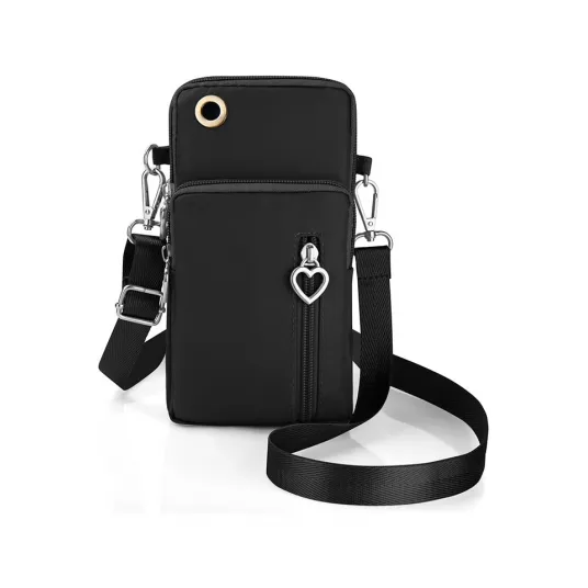 Geanta pentru telefon mobil, Aisdelu, crossbody, tip portofel, bareta ajustabila, compartimente multiple, Negru