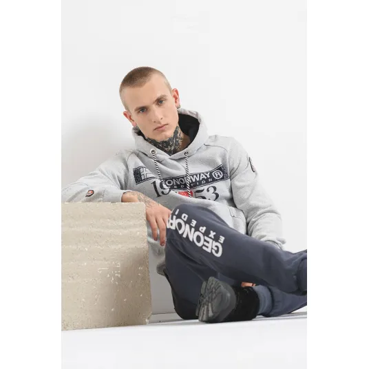 Geographical Norway, Hanorac din amestec de bumbac cu imprimeu logo Fastlife, Gri melange, Bleumarin, M