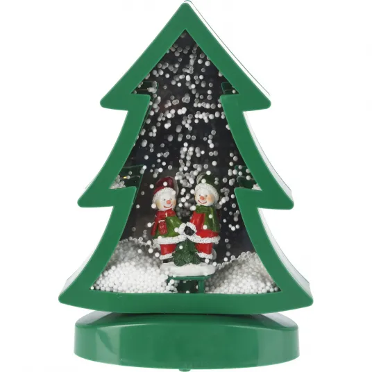 Glob decorativ muzical cu zapada Xmas Tree, 18.7x7.5xH27 cm, 21 mini LED-uri alb-cald