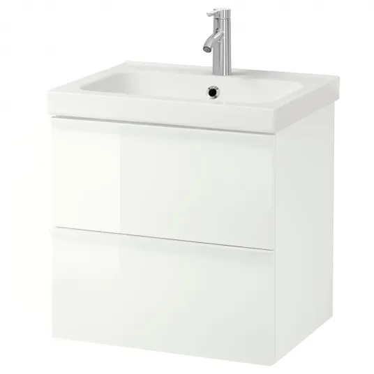 IKEA GODMORGON / ODENSVIK Masca lavoar cu 2 sertare, lucios alb/baterie DalskAr, 63x49x64 cm