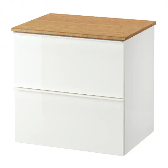 IKEA GODMORGON / TOLKEN Masca lavoar cu 2 sertare, lucios alb/bambus, 62x49x60 cm