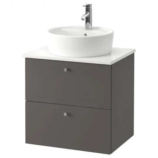 Masca lavoar+blat+lavoar IKEA GODMORGONTOLKEN TORNVIKEN 45 cm Gillburen gri inchis aspect marmura baterie DalskAr 62x49x74 cm este o chiuveta de baie eleganta si functionala, care aduce eleganta si confort oricarui spatiu de baie. Aceasta combinatie include un lavoar, blat si dulap, toate concepute pentru a se completa perfect.