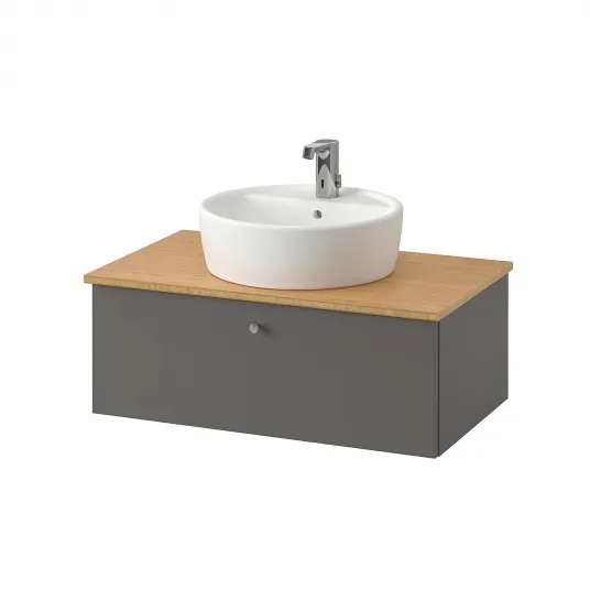 IKEA GODMORGON/TOLKEN / TORNVIKEN Masca lavoar+blat+lavoar 45 cm, Gillburen gri inchis/bambus baterie Brogrund, 82x49x74 cm
