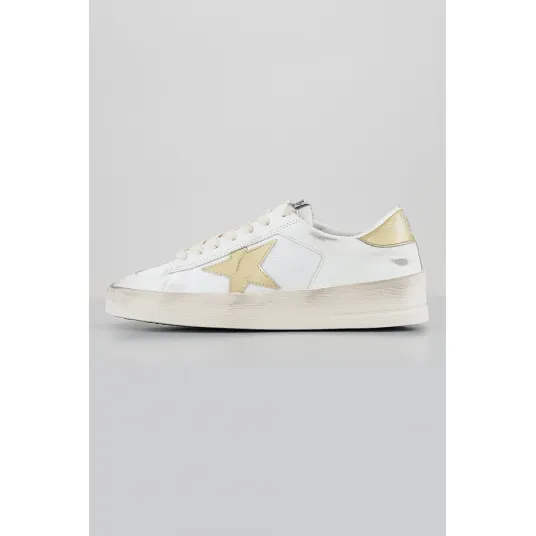 GOLDEN GOOSE, Pantofi sport de piele Stardan, Auriu, Alb murdar, 36GOLDEN GOOSE, Pantofi sport de piele Stardan, Auriu, Alb murdar, 36223091413223091413