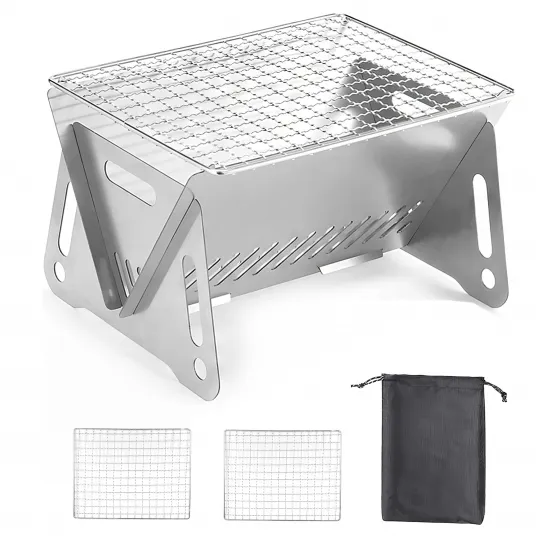 Gratar portabil pliabil, geanta de depozitare si 2 gril de gatit, Inox, 21 x 16 x 12.5 cm, Argintiu