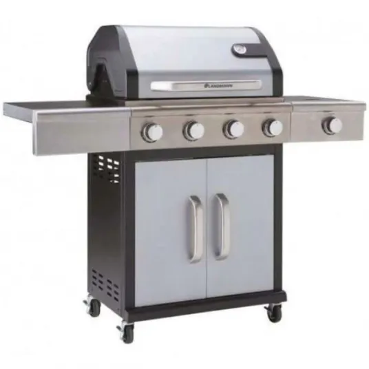 Gratar Triton 4.1 COOK arzatoare de 3.5 kw fiecare,arzator lateral de 2 kw,termometru in capac,mese laterale rabatabile,roti pentru deplasare,suprafata de gatit fonta 65x45,140x120x57,tava colectare grasime,PTS system,CAPAC SI CABINET vopsite in argintiu